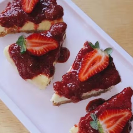 A 'Fatia de Cheesecake de Morango' é uma verdadeira tentação para os amantes de sobremesa. Começando por uma base crocante de biscoito amanteigado, que proporciona a textura perfeita. O protagonista é o suave e cremoso recheio à base de cream cheese, que equilibra o sabor e a textura, proporcionando uma experiência gastronômica inigualável. Para finalizar, uma generosa cobertura de calda de morangos frescos, que adiciona um toque de doçura e acidez, complementada com o leve e aerado chantilly. Uma fatia que promete uma explosão de sabor a cada mordida!