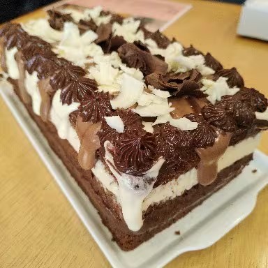 Saboreie a nossa 'Fatia de Torta - Sabor Duo', uma verdadeira delícia da categoria 'Fatias'. Este prato esplêndido é composto por uma massa leve e macia de pão de ló de chocolate, que se desmancha na boca. No seu interior, esconde-se uma camada generosa e suculenta de brigadeiro branco, feito artesanalmente com todo o carinho. E, para completar, outra camada de brigadeiro preto, rico e intenso, que proporciona um contraste perfeito de sabores. Uma verdadeira sinfonia de texturas e gostos que irá conquistar até os paladares mais exigentes. Experimente!