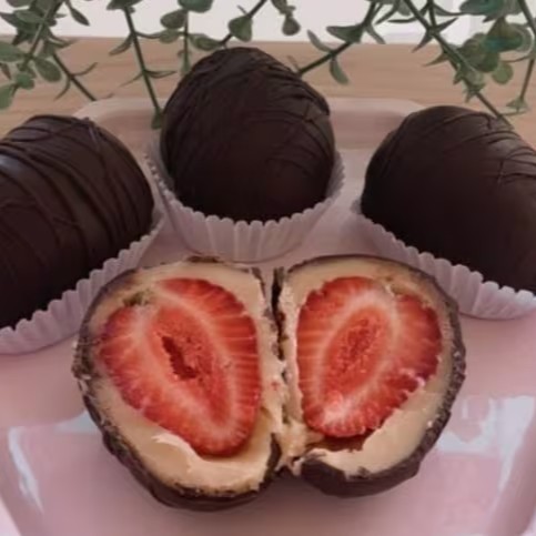 O 'Bombom de Morango', uma joia da nossa categoria 'Doces Especiais', é um verdadeiro deleite para os amantes de doces. Esse doce sofisticado e divinal consiste em um morango fresco e suculento, envolvido com maestria em uma massa de brigadeiro branco cremoso e aveludado. Para finalizar com um toque de elegância, este bombom é banhado em um luxuoso chocolate meio amargo, criando uma harmonia perfeita entre a doçura do recheio e a leve amargura do chocolate. Uma experiência gustativa inesquecível que derrete na boca, deixando um rastro de prazer e satisfação.