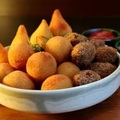 Monte Seu Combo com 40 Salgados e Escolha os Sabores do Jeito Que Preferir! Opções Irresistíveis: Coxinha de Frango, Bombom de Presunto Com Muçarela, Risole de Milho, Quibe e Charuto de Bacon. Todos Fritos na Hora Para Garantir Crocância e Sabor!
