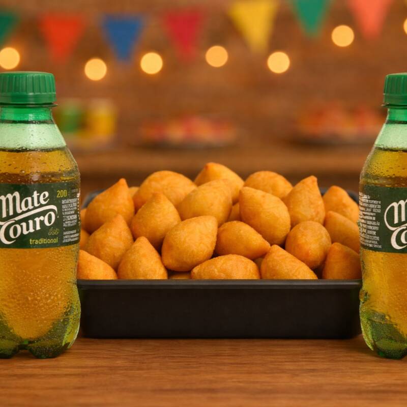 Aproveite 50 Salgados Artesanais + 01 Mate Couro de 1 Litro! Escolha Seus Sabores Favoritos ou Deixe a Seleção Por Nossa Conta. Fritos na Hora Para Máxima Crocância e Sabor!