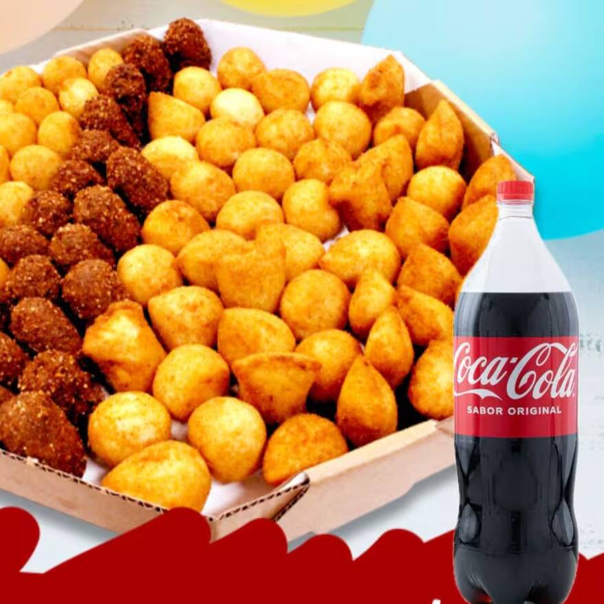 100 Salgados + 1 Refrigerante Coca Cola 2l