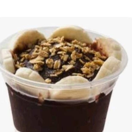 Açaí Premium com camadas de leite condensado leite em pó granola e banana