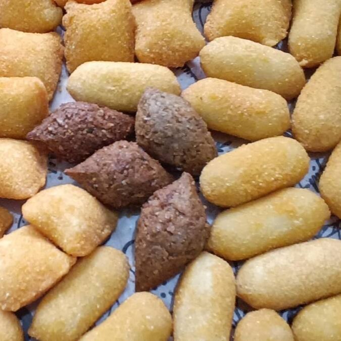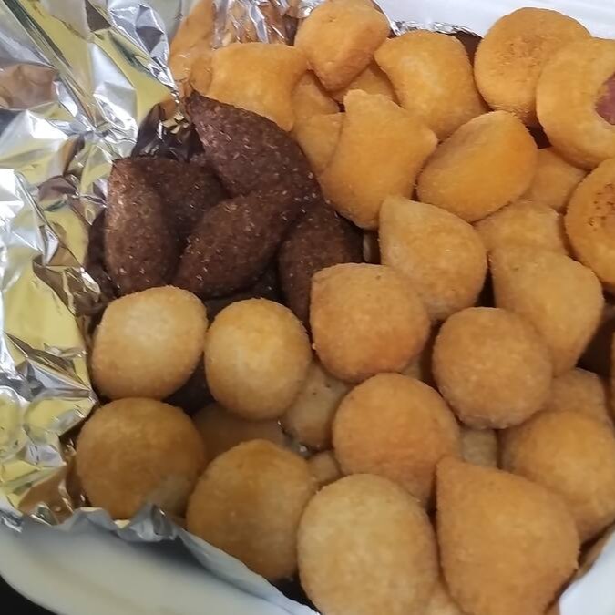 25 unidades salgado fritos na hora sequinho crocante bem recheado, obs: salgados entregue pronto para o consumo por isso não conseguimos fazer alteração na massa ou recheio tamanhos variados de 15a20gr, obs; salgados entregues para consumo por isso não conseguimos fazer alteração na massa ou o recheio