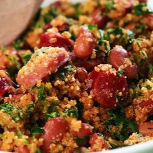 Arroz, feijão ( a escolha tropeiro ou comum), mais uma opção de carne.