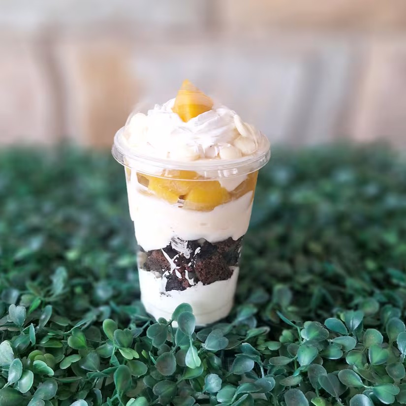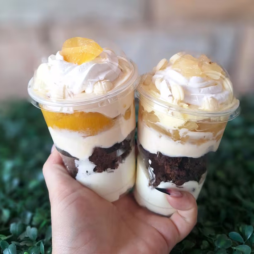 Para os amantes de pêssego, temos esse delicioso copo nuvem de pêssego, com nosso delicioso recheio nuvem de Ninho, camadas de brownie, recheio de Ninho, pedaços de pêssego, finalizado com chantilly