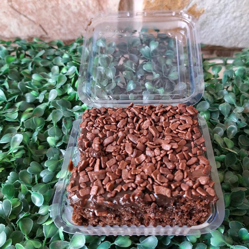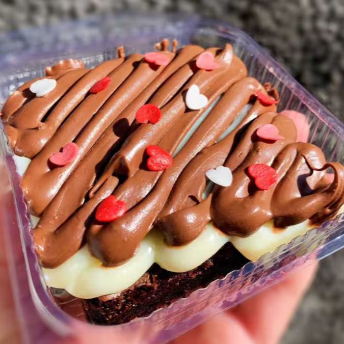 Brownie chocolatudo com uma deliciosa cobertura de Ninho e chocolate enfeitado com chocoball e uma trufa a sua escolha.