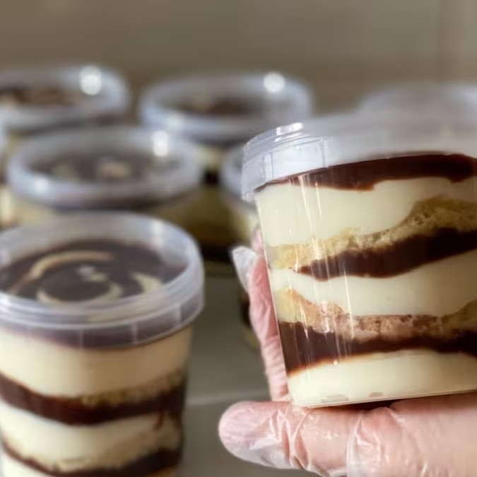 Dupla deliciosa de 300ml cada, sendo um delicioso copo nuvem de abacaxi, com camadas do nosso recheio nuvem de Ninho, brownie, recheio de Ninho, pedaços de abacaxi, finalizado com chantilly e chocolate branco. Outro copo delicioso de pêssego com recheio nuvem de Ninho, brownie, recheio de Ninho, pedaços de abacaxi e finalizado com chantilly