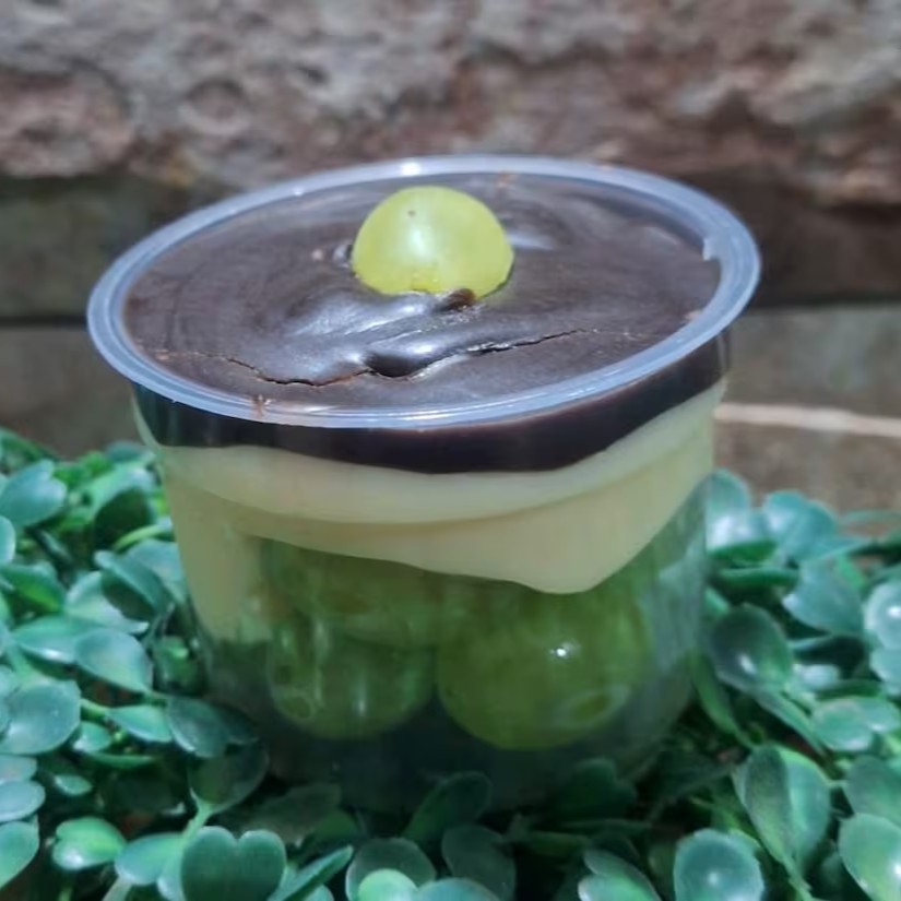 Bombom no Pote aprox.: 150g ganache de chocolate ao leite, Brigadeiro de Ninho e Uvas Verdes