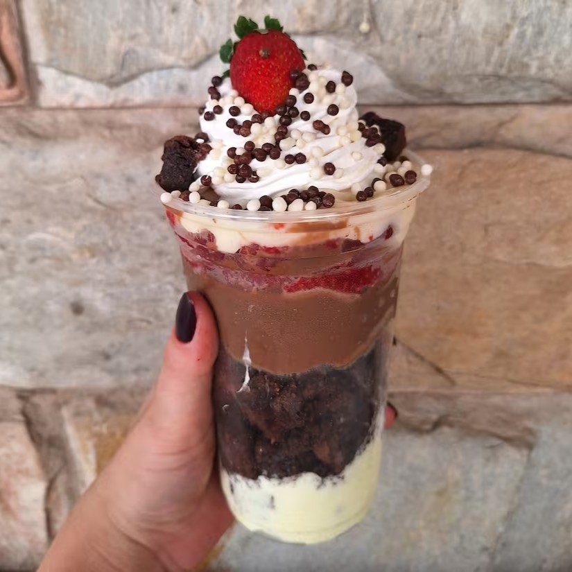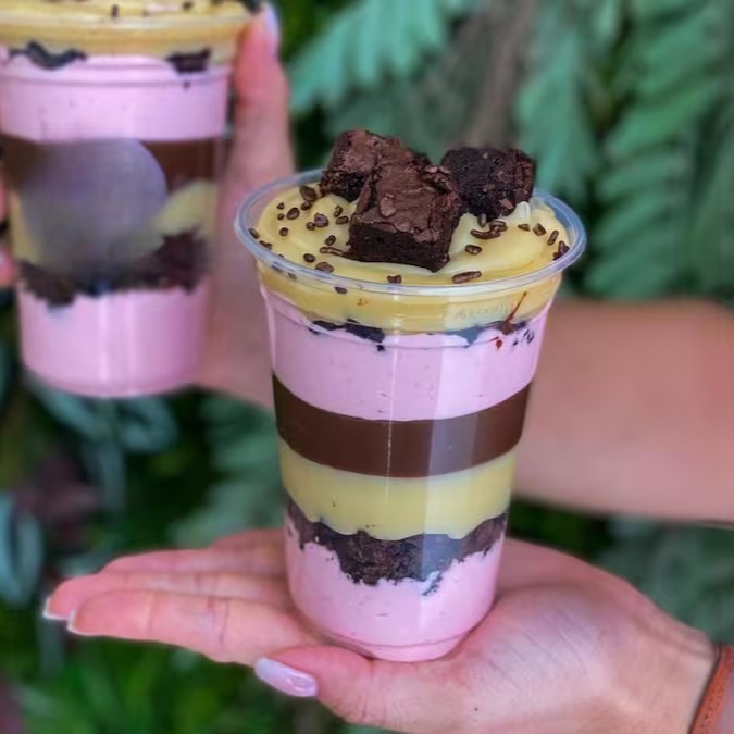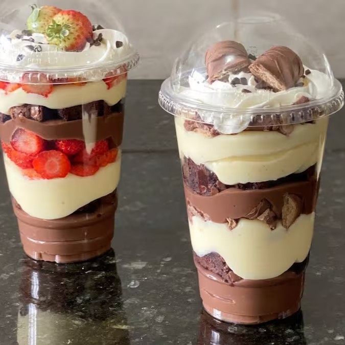 São Dois Deliciosos Copos da Felicidade com os Melhores Doce em Uma Combinação Perfeita com Brownie Sendo Diversas Opções Para Você Escolher !!