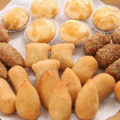Salgados prontos para consumo.