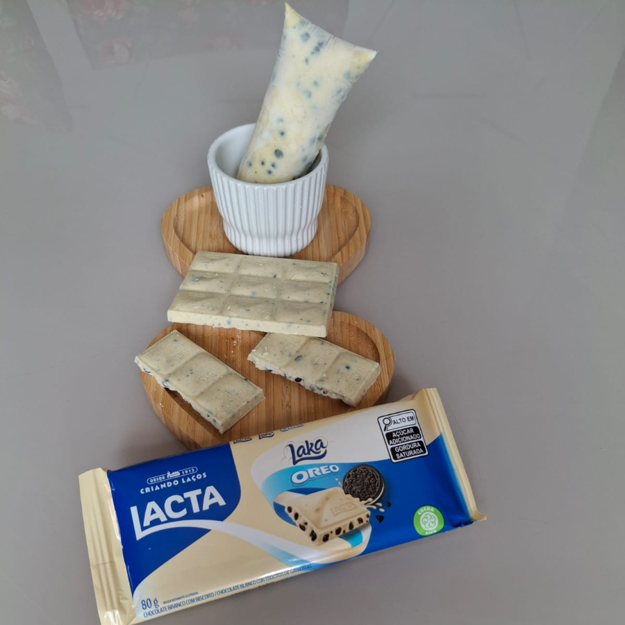 Base de Leite condensado, Creme de Leite, 20gr de Casquinha de Chocolate Laka Óreo e um Biscoito Óreo dentro