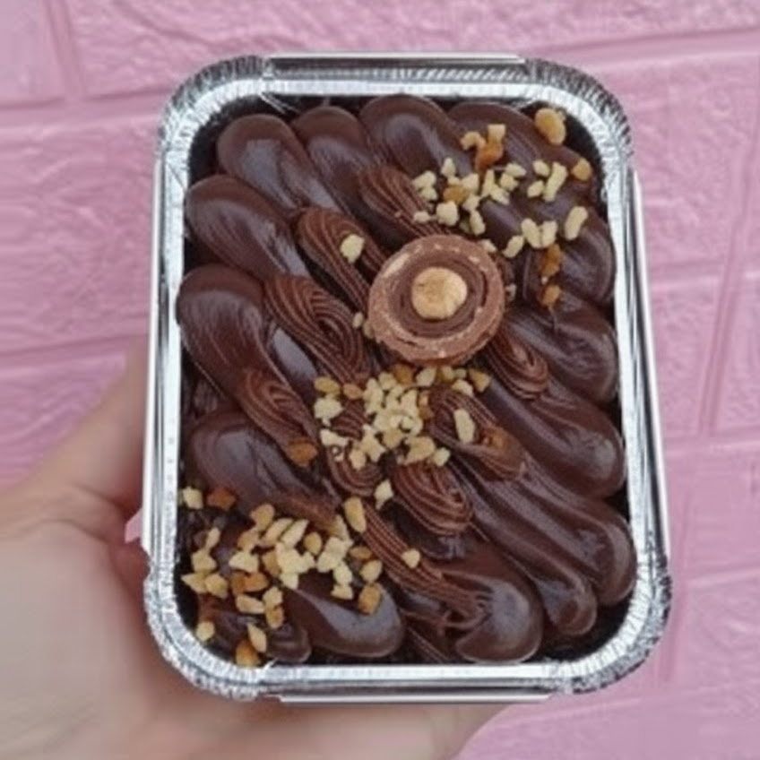 Recheio do nosso Mousse de Chocolate cremoso e aveludado, nutela, Brownie, camadas de Brigadeiro Tradicional e Bombom Ferrero Rocher