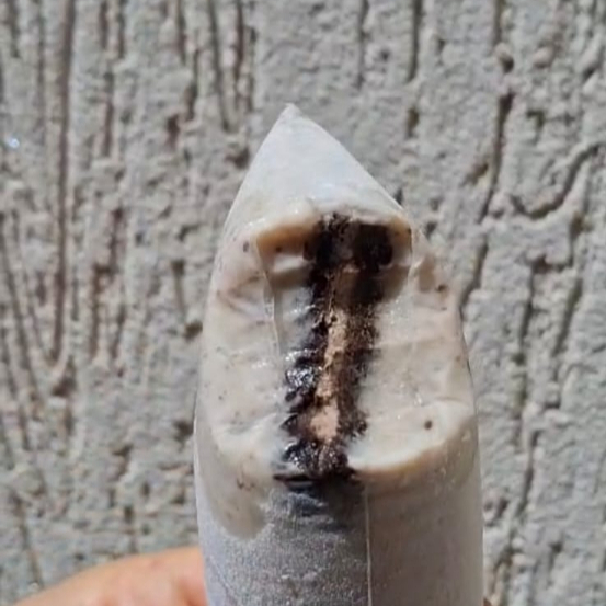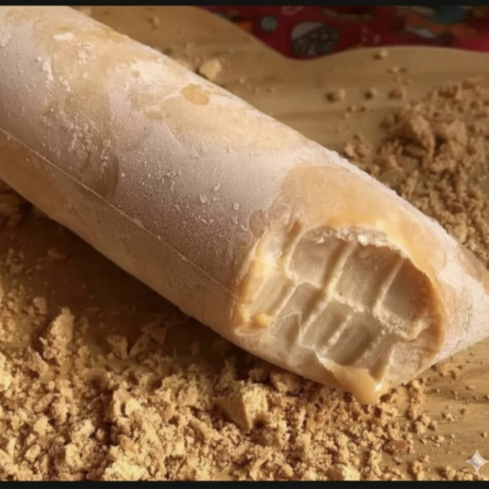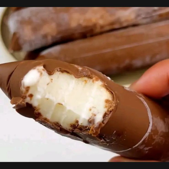 Base de Leite Condensado Super cremosa, 20 gramas de casquinha de chocolate branco por fora e uma barra de chocolate ao leite por dentro