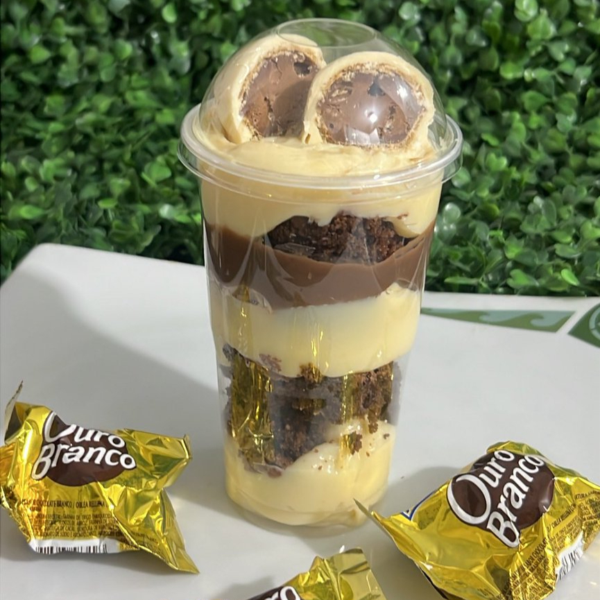 Recheado com nosso creme de ninho cremoso e aveludado, brownie chocolatudo, Brigadeiro tradicional, mousse de ninho e e Ouro branco.
