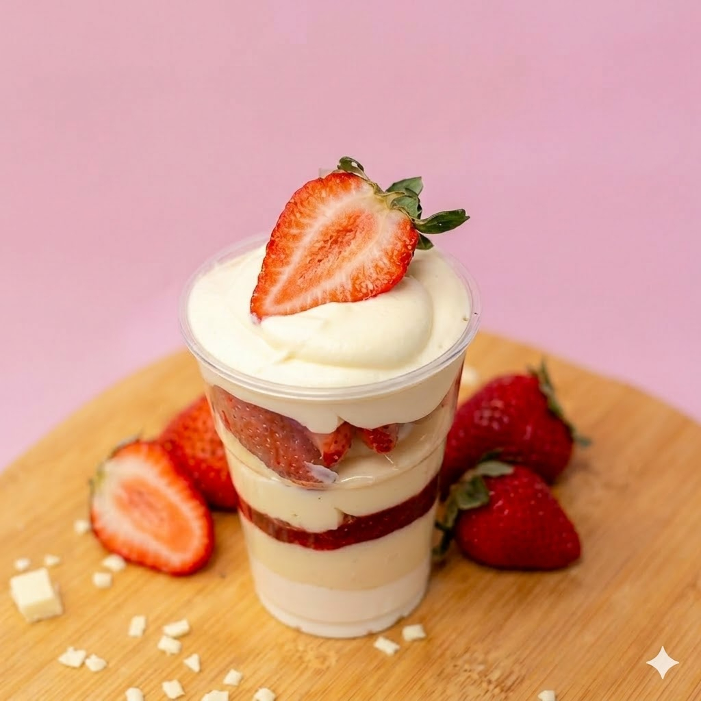 Base de Ninho cremosa com 20gr. De geléia de morango artesanal. Uma combinação perfeita