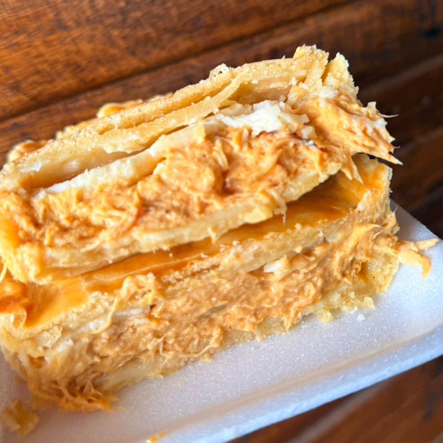 Torta cremosa de frango desfiado com catupiry em massa folhada crocante.500ml
