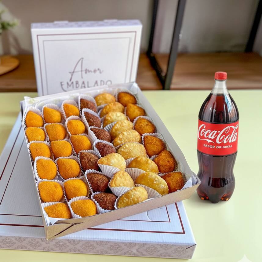 Kit Festa 100 Salgados Misto + Coca Cola 2 Litros