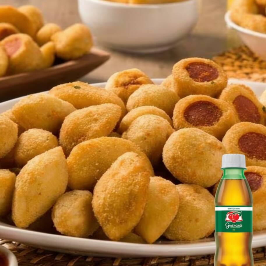Combo perfeito para qualquer momento! São 30 salgados fresquinhos, crocantes por fora e macios por dentro, com opções de milho, alho-poró e queijo, preparados com ingredientes selecionados e muito sabor. Acompanha 1 refrigerante 200 ml à sua escolha entre Fanta Laranja, Guaraná ou Pepsi. Ideal para dividir, reuniões, lanches rápidos ou matar a fome com variedade e ótimo custo-benefício.