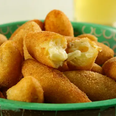 Porção com 25 bolinhos de mandioca com queijo dourados e crocantes por fora, macios e recheados com queijo derretido por dentro. Ideais para compartilhar, acompanhar aquele lanche ou matar a fome a qualquer hora. Servidos quentinhos e cheios de sabor.