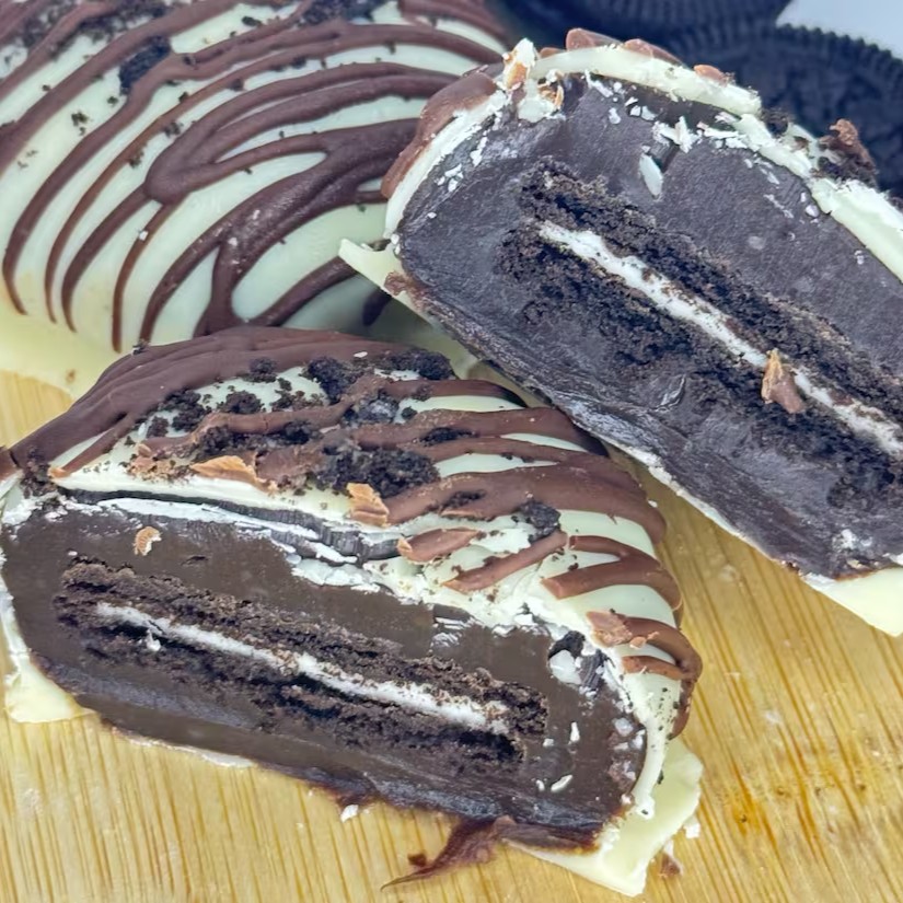 Uma combinação perfeita: biscoito crocante, coberto com brigadeiro cremoso e finalizado com uma deliciosa camada de chocolate branco. Doce, crocante e irresistível em cada mordida!