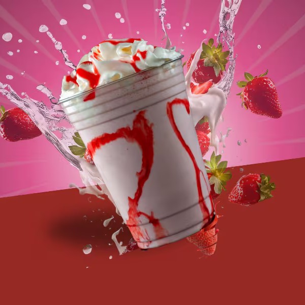 Desfrute de um milkshake celestial, preparado com sorvete de morango cremoso, leite integral gelado e uma generosa cobertura de morango. Uma combinação irresistível de sabores refrescantes e doces que vai te deixar com água na boca!