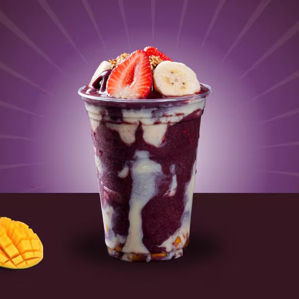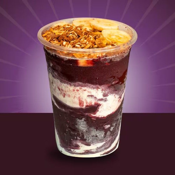 Uma fusão sublime de açaí cremoso, banana fresca e granola crocante, com um toque envolvente de leite em pó. Uma jornada de sabores e texturas que elevam cada colherada a uma experiência memorável e revigorante!