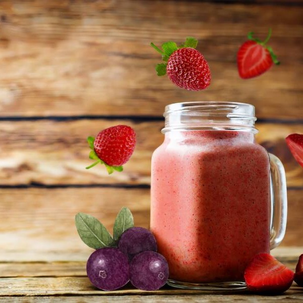 Vitamina refrescante: leite gelado batido com açaí e morangos frescos. Uma mistura irresistível que combina a cremosidade do leite gelado com a energia do açaí e a doçura dos morangos, proporcionando uma explosão de sabores refrescantes em cada gole!