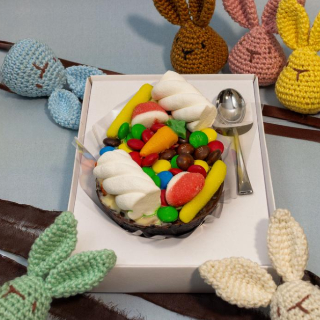 Casca de Brownie cacau black e recheio duplo: nosso queridinho creme de Leite Ninho e Brigadeiro Trufado, finalizado com muitas guloseimas para fazer a festa da criançada (Aprox. 350g)