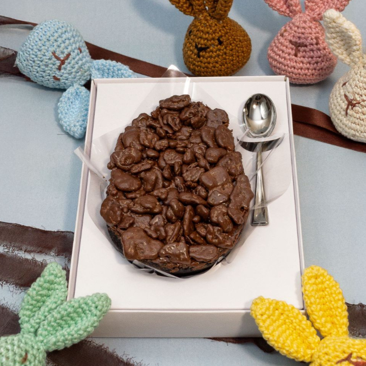 Casca de Brownie cacau black receheada com brigadeiro meio amargo, creme Original Ovomaltine e finalizada com rocks de Ovomaltine. (Aprox. 350g)