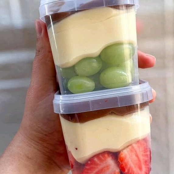 Duas sobremesas no pote por menos, um bombom de uva+um bombom de morango.com desconto.