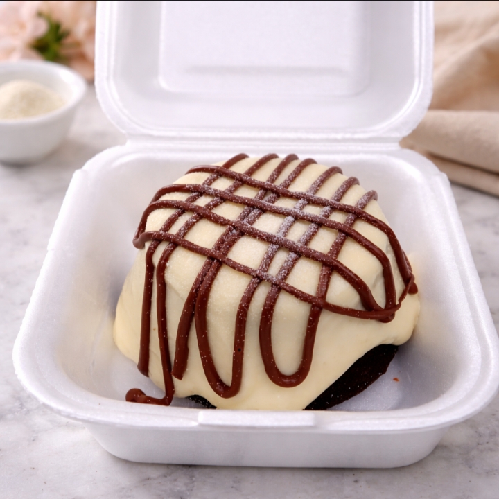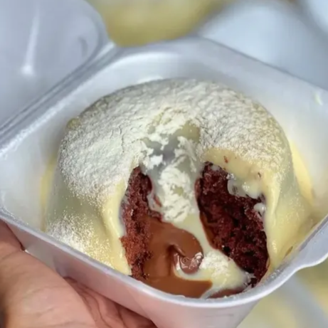 Bolinho vulcão massa bem fofinha de chocolate 50% cacau, coberto com creme de Ninho e finalizado com nuttela. Sabor irresistível da junção do nosso creme de Ninho e creme de avelã. 12cm