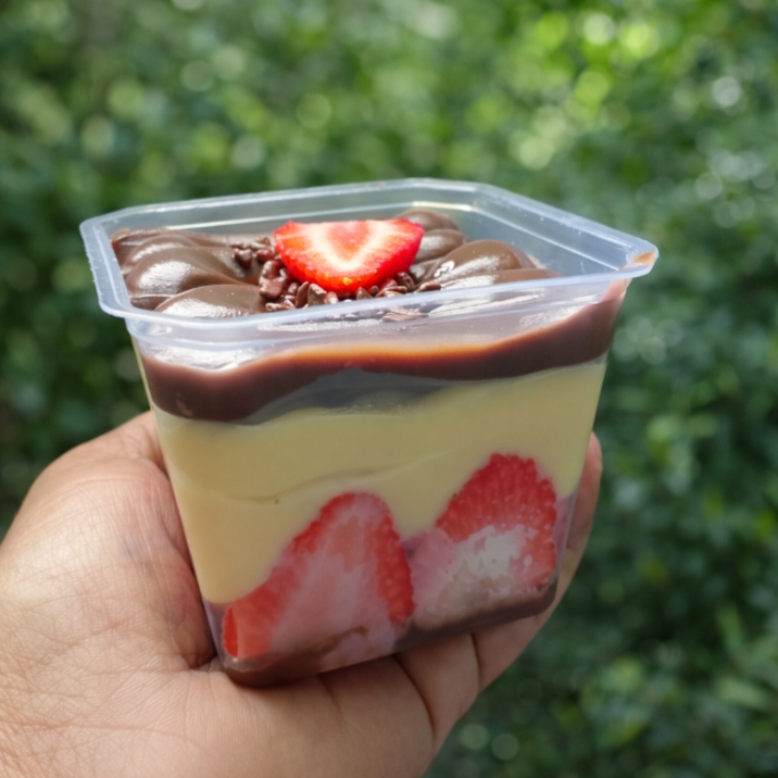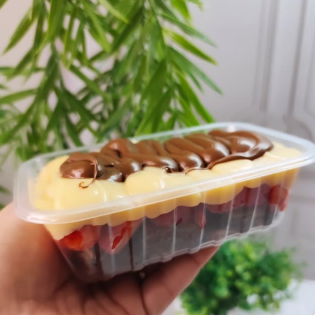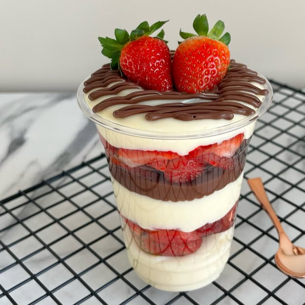 Nosso escondidinho de brownie com morangos frescos, camada de creme de Ninho e finalizado com Nutella. 220ml