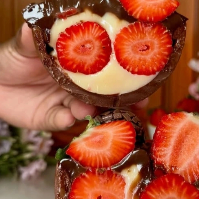uma combinação irresistível de morangos frescos, creme de ninho, com creme de avelã, criando o equilibrio perfeito entre doce, leve e saboroso.