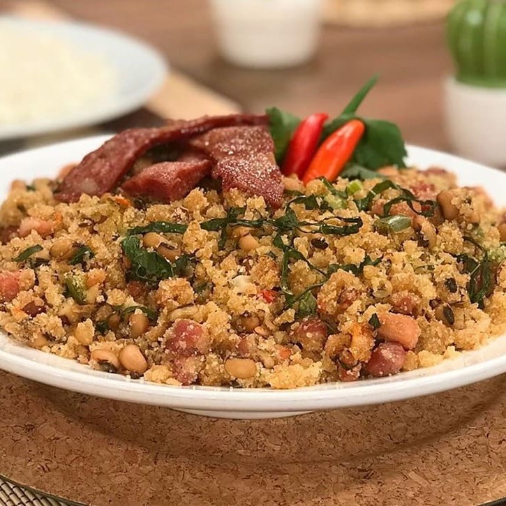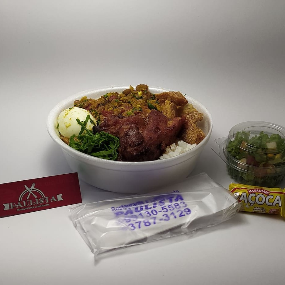 Delicioso Feijão Tropeiro do Paulista Muito Bacon, Calabresa, Com Ovo Frito, Frango Assado acompanha Arroz E Fritas e Torresmo 500 Gr