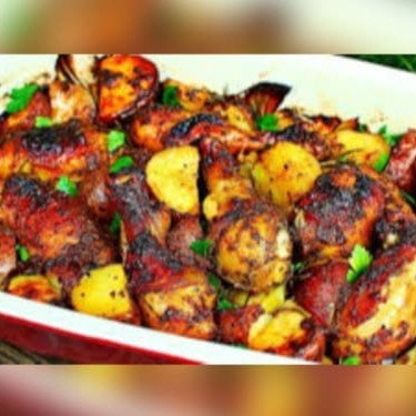 Delicioso e Saboroso Frango Assado Macarrão Acompanha: Arroz, Feijão, Farofa, Fritas Macarrão e Salada .