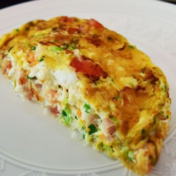 Delicioso Omelete com Tomate , Presunto, Queijo, Frango Desfiado e Catupiry orégano .