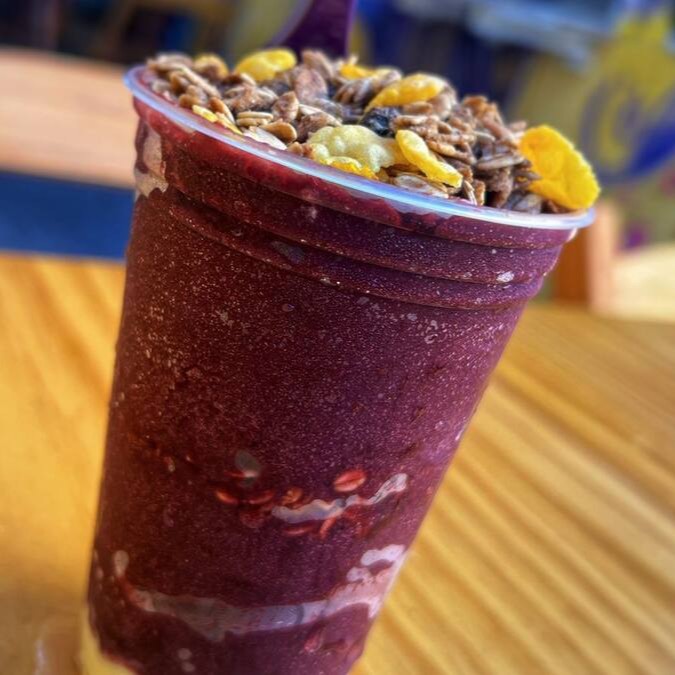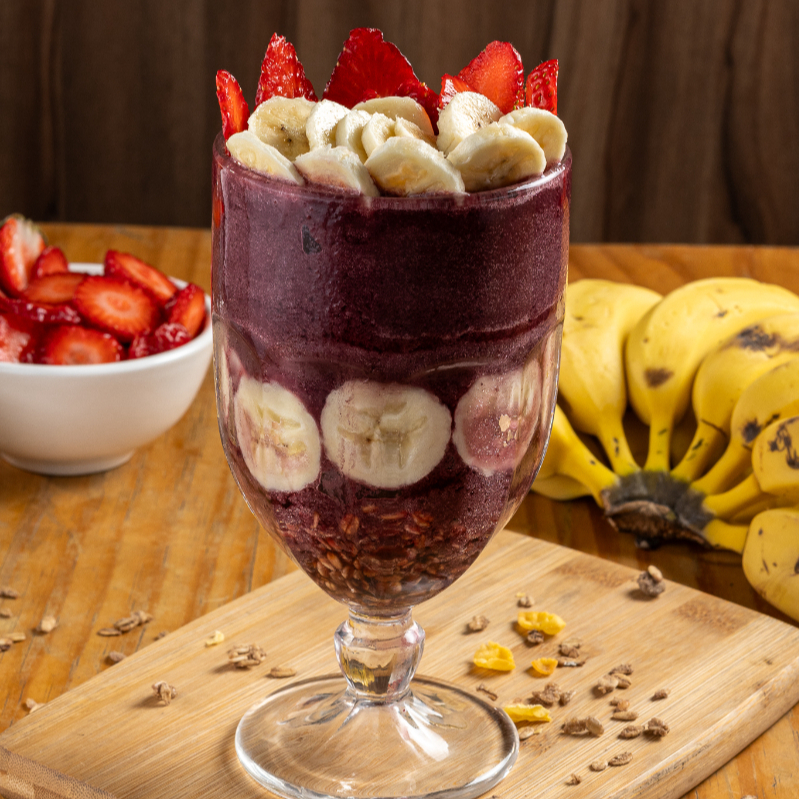 Açaí Premium com uma generosa camada de Leite em pó e Granola.