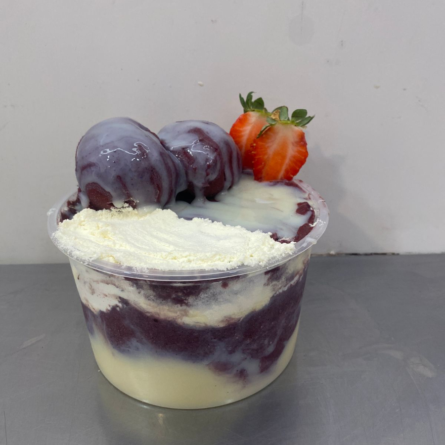 Delicioso Açaí com muito leite condesado e leite em pó.