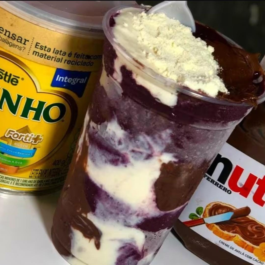 Delicioso Açaí para os apaixonados em creme de ninho e Creme de avelã,é composto pelo delicioso creme de Açaí e camadas meio a meio.
