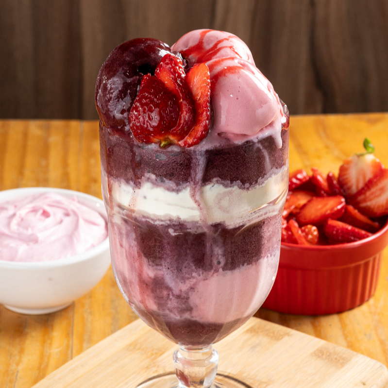 Desfrute da indulgência máxima com nosso Açaí Premium, uma combinação perfeita de sabores e texturas. Começamos com uma base generosa de açaí puro, Em seguida, adicionamos uma bola cremosa de sorvete de morango mesclado com Nutella que traz uma doçura frutada e uma textura aveludada ao prato. Prepare-se para uma experiência gastronômica que vai satisfazer todos os seus sentidos. Este é o Açai trufado com Sorvete de Morango c/Nutella - uma indulgência que você não vai querer perder!