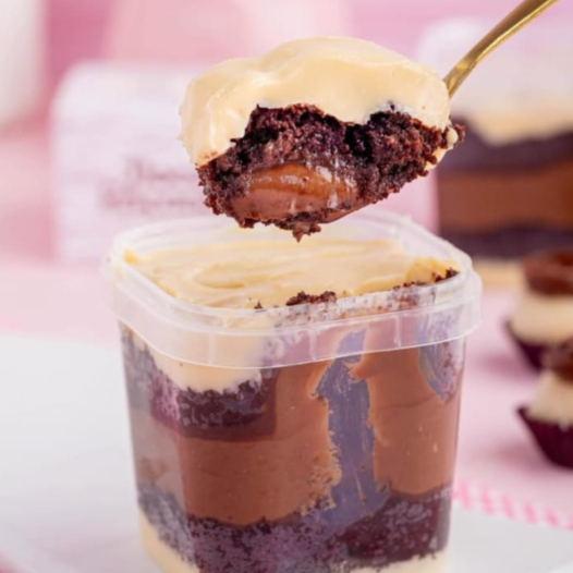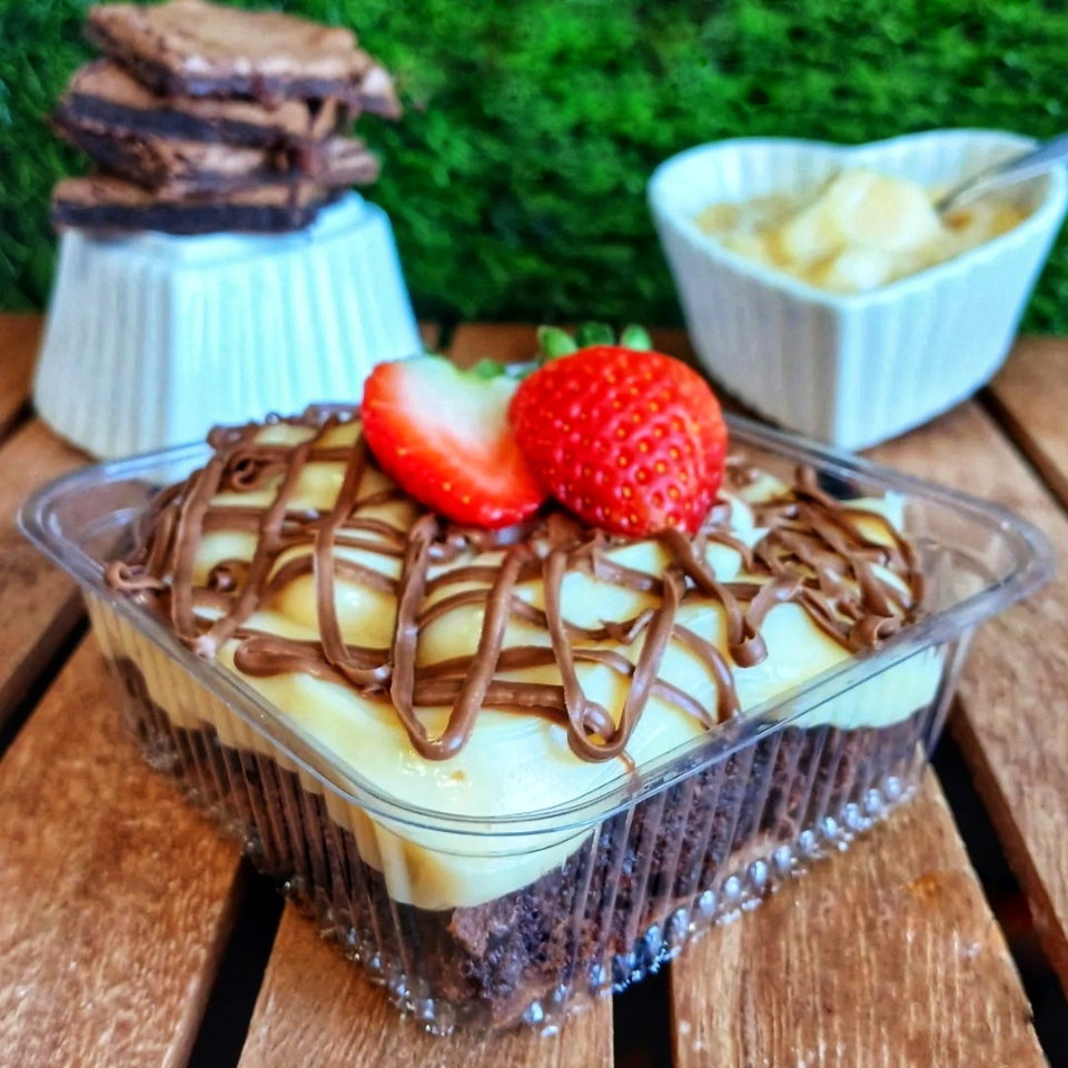 Nosso brownie será coberto com nosso recheio extremamente cremoso de brigadeiro branco cremoso, Ninho legítimo, finalizado com creme de avelã e morango Irresistível, peça agora o mesmo o seu Brownie!