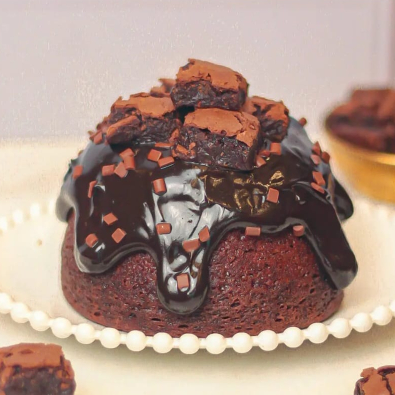 Bolo Vulcão de Chocolate – Nosso bolo vulcão super chocolatudo, feito com massa de chocolate caseira, bem molhadinha e que chega quentinho na sua casa. Recheio generoso no centro com brigadeiro artesanal cremoso e pedaços do nosso brownie queridinho. Finalizado com uma cobertura farta de brigadeiro artesanal quentinho e mais brownie, criando uma verdadeira explosão de sabor a cada colherada.