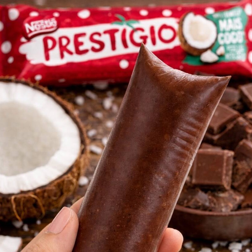 Imagine a combinação perfeita entre chocolate e coco, transformada em um geladinho super refrescante! Simplesmente irresistível!