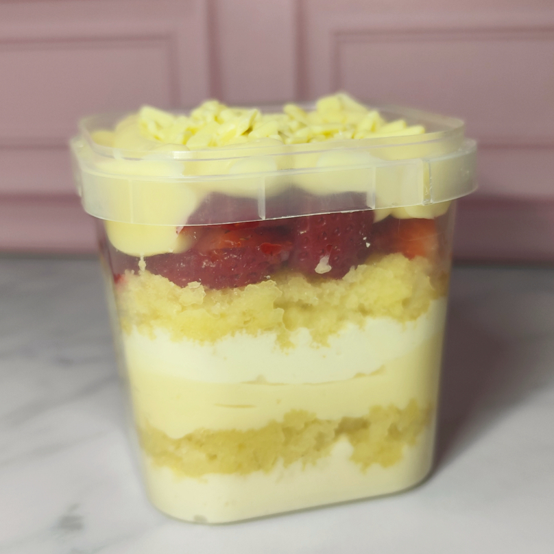 Dupla camada de massa branca deliciosa, fofinha e bem molhadinha, dupla camada de chantimousse de ninho, dupla camada de brigadeiro cremoso de ninho, camada de morangos frescos picados e finalizado com granulado de chocolate branco nobre. 240g.