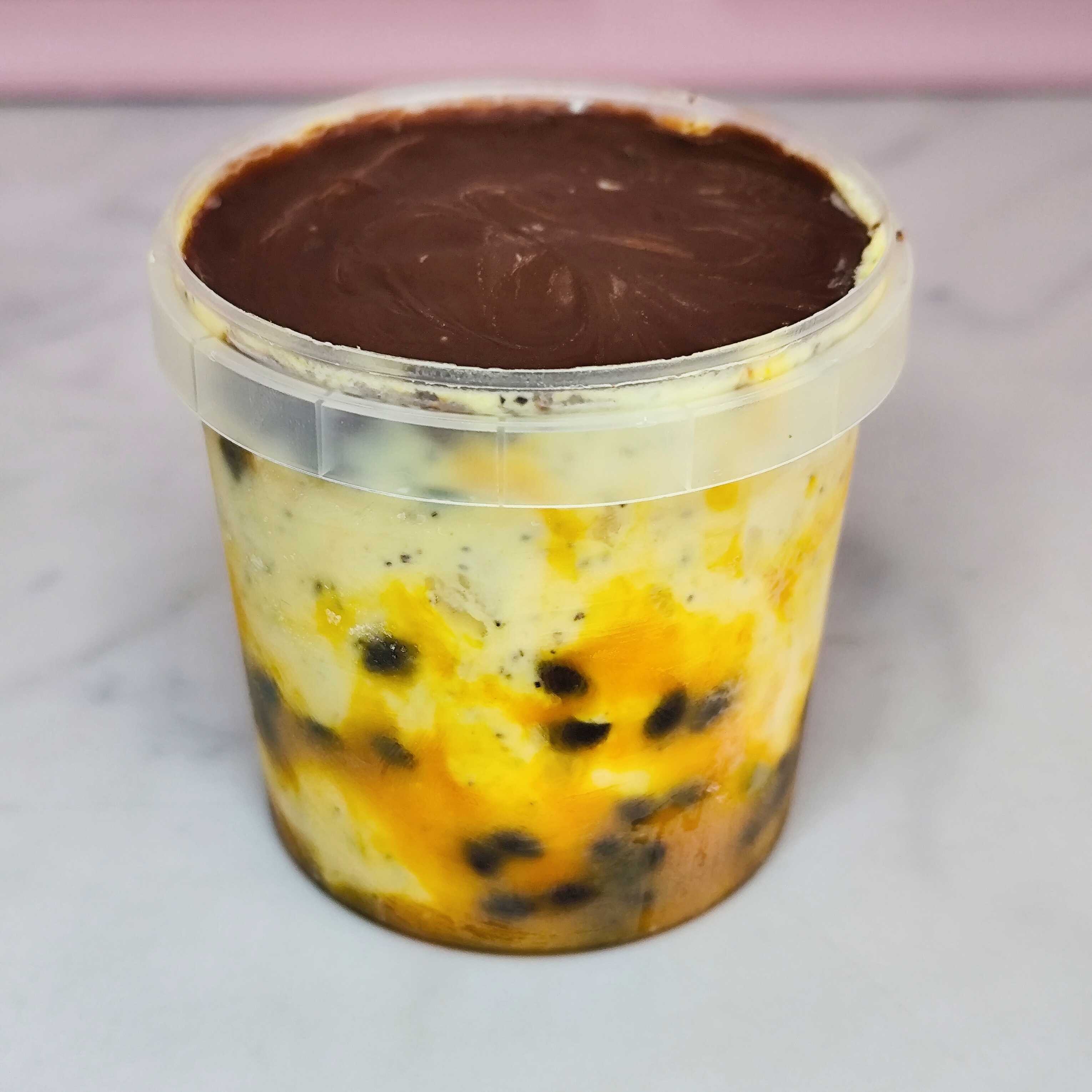 Base muito cremosa de maracujá feita com a própria fruta, trufada com geleia de maracujá artesanal. 200g