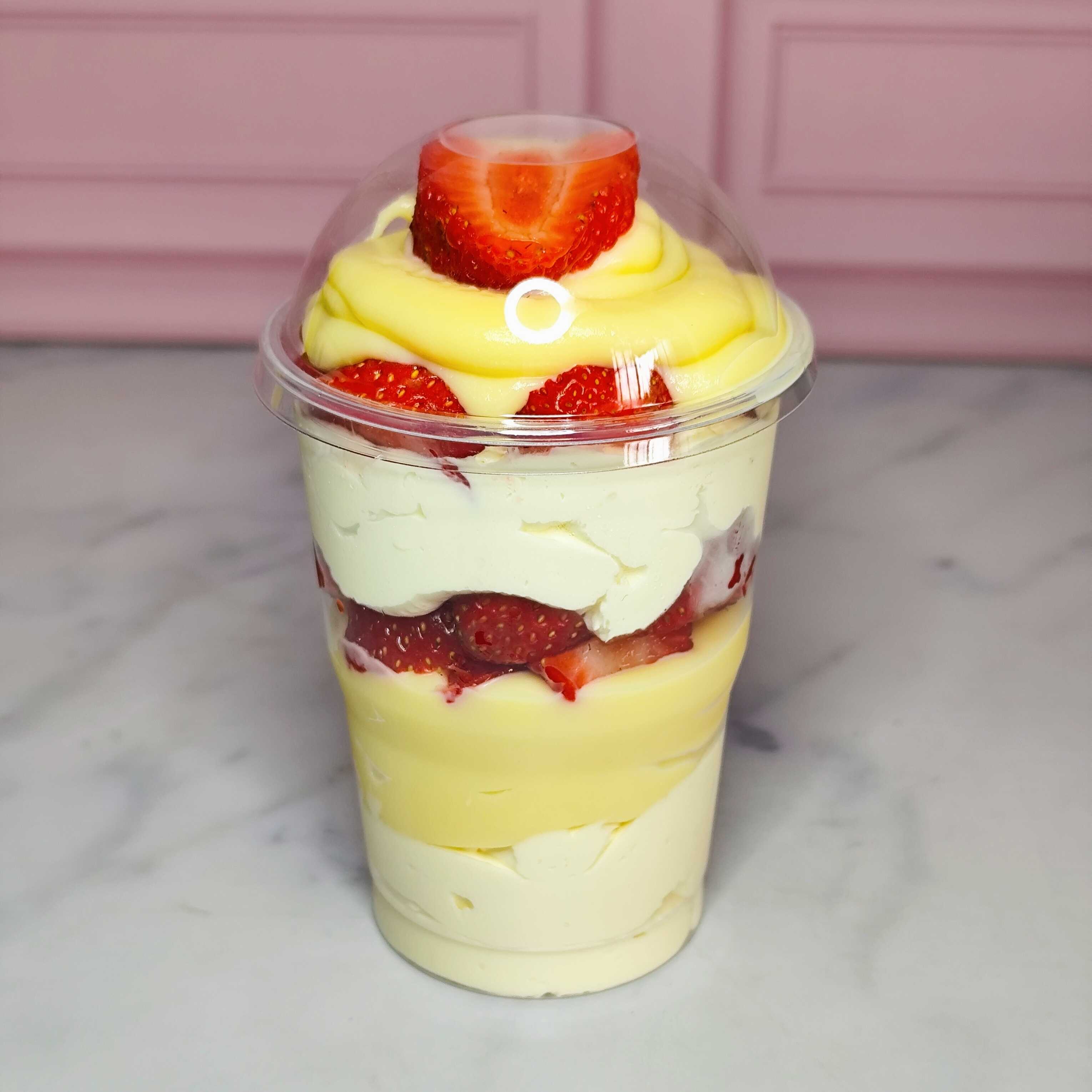 Camada de chantimousse de ninho, camada de brigadeiro cremoso de Ninho, intercalada com camadas de biscoito molhadinho e morangos picados. 160g (Redução de 250g para 160g)so de Ninho, intercalada com camadas de biscoito molhadinho e finalizado com morangos picados. 180g (Redução de 250g para 180g)