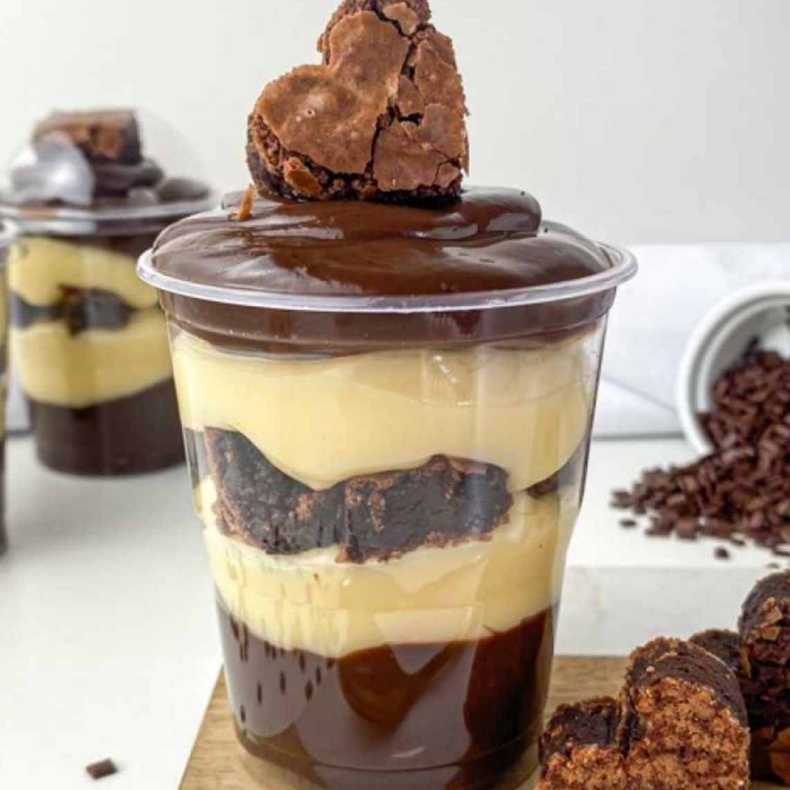 Sabe aquela vontade de comer um docinho, mas não quer exagerar?! Esse potinho é perfeito! Camada de brownie e camada brigadeiro de chocolate blend. 140g