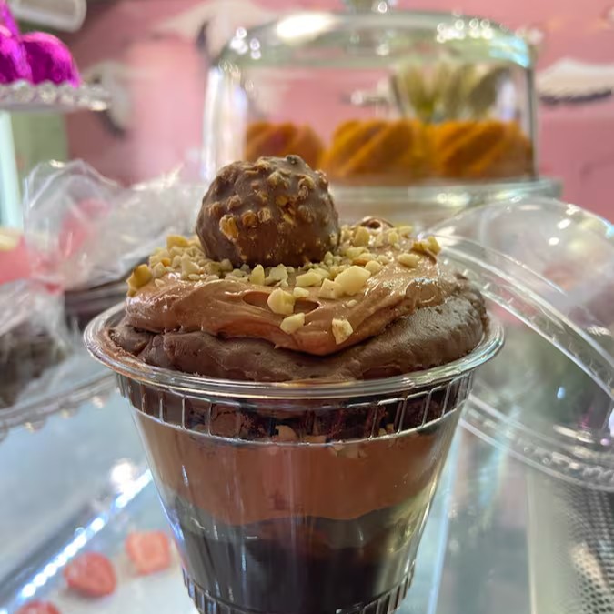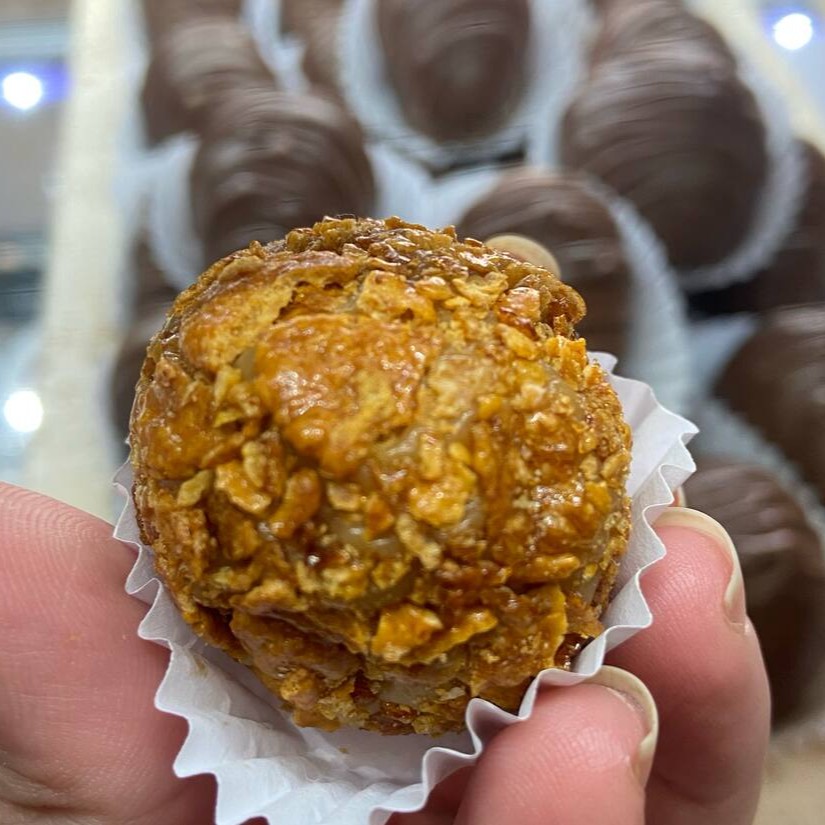 Ganache ao leite, brownies e nosso incrível creme ferrero.