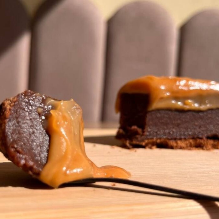 Base de brownie intensa e úmida, aquela que derrete devagar… Por cima, uma mousse de Nutella leve e aveludada, abraçando tudo com cremosidade. Finalizada com Nutella generosa escorrendo e pedaços de Ferrero Rocher que quebram o silêncio com crocância. Uma torta pra comer sem pressa, fechar os olhos e deixar o chocolate contar a história
